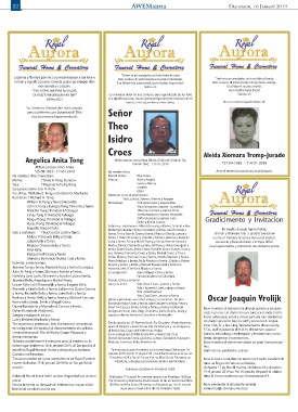 anochi. Adres pa condolencia Paradera 162B. diahuebs 17 pa 8’or di mainta, diabierna 18 y diasabra