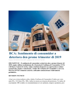 comunicado. Segun e comunicado, e Indice di Confiansa di Consumidor a cai te na