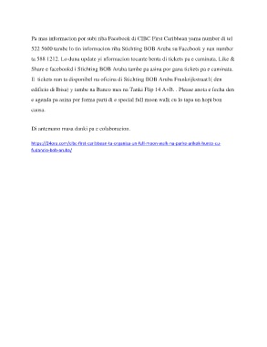 ta 588 1212. Lo duna update yi nformacion tocante benta di tickets pa e caminata. Like &