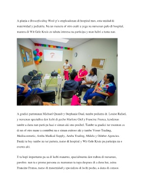 A plania e Breastfeeding Week p’e empleadonan di hospital mes, esta unidad di