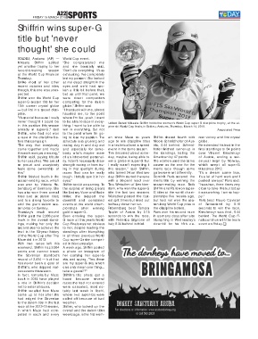 ings, making her only the Cup Finals was not obvious Italy 0.34 behind in third. downhill for his 16th ca- event on Friday.q