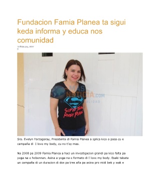 Sra. Evelyn Yarzagaray, Presidente di Famia Planea a splica kico a pasa cu e