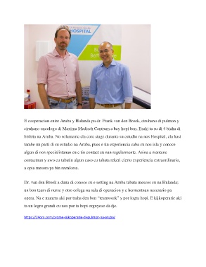 E cooperacion entre Aruba y Hulanda pa dr. Frank van den Broek, ciruhano di pulmon y