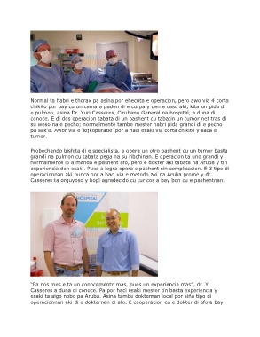 conoce. E di dos operacion tabata di un pashent cu tabatin un tumor net tras di