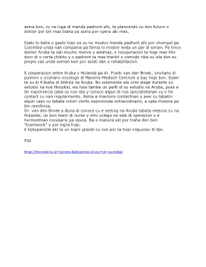 estudio na nos Hospital, ela hasi tambe un parti di su estudio na Aruba, pues e
