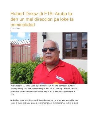 Hubert Dirksz di FTA: Aruba ta