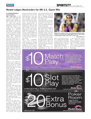 aged to stop Medvedev’s out, this time at 5-4. Natu- Federer, who lost in the Nadal says he wants to on how it all shakes out in