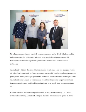 evento ta Powered by Aruba Bank y Digicel Business Solutions cu un aporte di Aruba