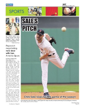 one-third San Antonio. So, Boston Red Sox's Chris Sale delivers a pitch against the Tampa Bay Rays during the first inning of a baseball game at Fenway