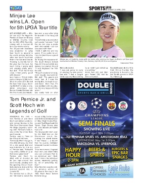 "Coming in, the first half of The South Korean birdied tournament at Wilshire Country Club, Sunday, April 28, 2019, in Los Angeles. Associated Press