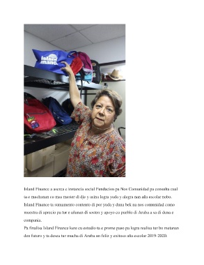Island Finance ta sumamento contento di por yuda y duna bek na nos comunidad como