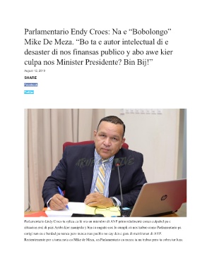 Parlamentario Endy Croes ta splica cu ki ora un miembro di AVP primordialmente esnan culpabel pa e