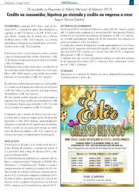 Di acuerdo cu Resumen di Relato Mensual di februari 2019