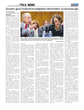 received the information Feinstein has held the letter ernment and the judiciary. process that Republicans show Kavanaugh's involve-