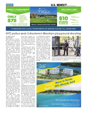 the shooting late Saturday the parks department de- ground," Brooklyn Bor- A police officer walks by yellow evidence markers at a play-