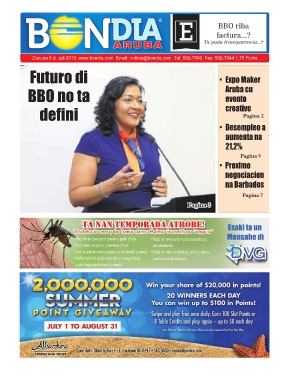 Dialuna 8 di Juli 2019 www.bondia.com Email: noticia@bondia.com Tel: 582-7800 Fax: 582-7044 1,75 Florin