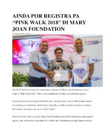 como e “Pink Walk 2018”. Mary Joan Foundation ta corda comunidad pa registra.