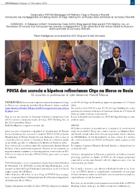 Latin American Herald Tribune (LAHT) ta raporta den nan edicion Na october caba PDVSA a uza 50.1% di Citgo Holding Inc como