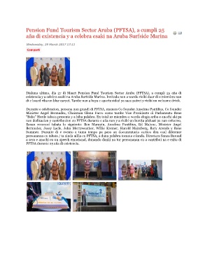 Dialuna ultimo, dia 27 di Maart Pension Fund Tourism Sector Aruba (PFTSA), a cumpli 25 aña di