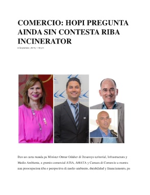 Den un carta manda pa Minister Otmar Oduber di Desaroyo teritorial, Infrastructura y