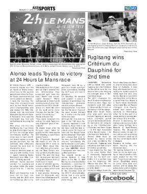 Fernando Alonso won the "We really have the impres- gear box failure overnight Fuglsang won the Critérium Haig of Australia. It was