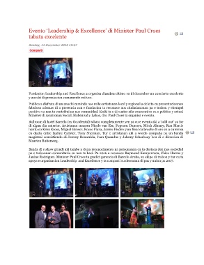 Fundacion Leadership and Excellence a organisa diasabra ultimo 10 di december un concierto excelente