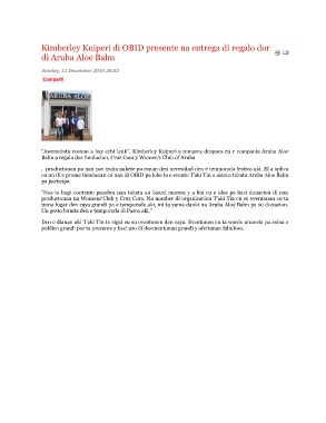 tuma lugar den caya grandi pa e temporada aki, mi ta yama danki na Aruba Aloe Balm pa su donacion.