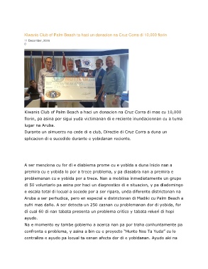 Kiwanis Club of Palm Beach ta haci un donacion na Cruz Corra di 10,000 florin