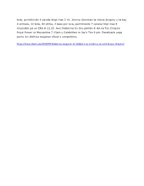 imparable pa un ERA di 12.25. Awe Diabierna tin dos partido di AA na Pos Chiquito