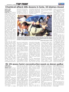 peace efforts by giving Syr- flict, while half of the coun- the chemical strike in Idlib The EU, which is hosting the ways to help rebuild, but