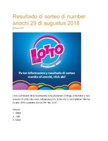 Lotto cambiando bida ta presenta e resultadonan di Wega di Number y subi