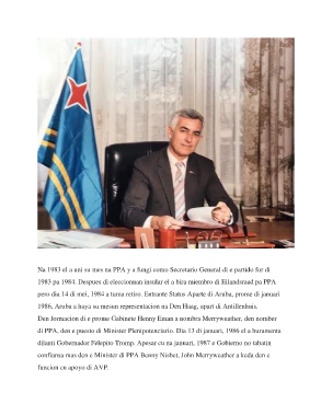 pero dia 14 di mei, 1984 a tuma retiro. Entrante Status Aparte di Aruba, prome di januari
