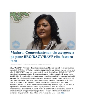 ORANJESTAD – Gobierno (lesa: minister Xiomara Maduro) a dicidi cu comerciantenan