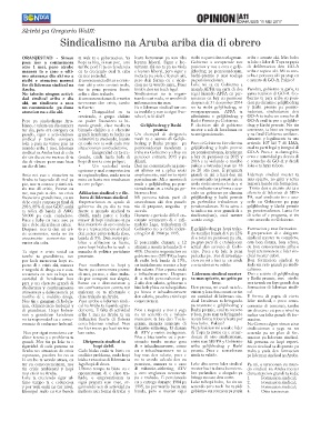 sindical na Aruba haci di e dia • Insiguridad cu ta cre- traha na Gobierno y a bay cu pa pensionadonan, kendenan GO-A. Pues e ta duna gobi-