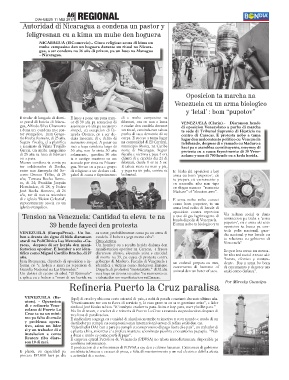 tor evangelico, Juan Grego- neyda Orozco, cu a ser de- purba di saca demonio di su centro di Caracas. E protesta nobo a tuma