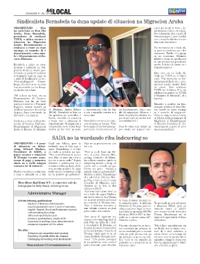 Sindicato a sinta cu Departa- a tuma over e situacion di Bernabela a remarca cu e pro- su totalidad bek.” Migracion y Departamento