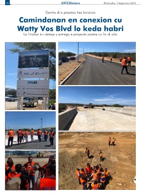 16 AWEMainta Diahuebs, 1 Augustus 2019 Dentro di e proximo tres lunanan Camindanan en conexion cu Watty Vos Blvd lo keda habri Lo finalisa tur detaye y entrega e proyecto prome cu fin di aña