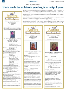 Un gradicimentospecial di erna 2 di augustus 2019. Nos defuntostima lo ta for di Funeral Home.