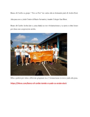 Banco di Caribe su grupo “ Nos cu Nos” tin varios aña ta formando parti di Aruba Doet.