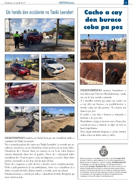 chauffeur di e Vcar no por a evita un impacto y ta dal e Yaris duro Ministro encarga cu Salubridad ta anuncia cu entrante 9 april 2019