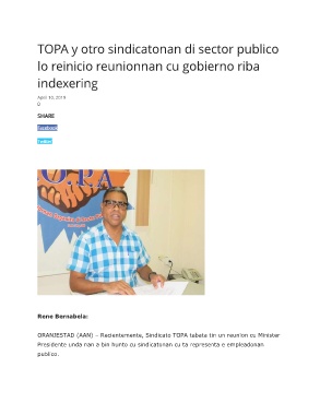 ORANJESTAD (AAN) – Recientemente, Sindicato TOPA tabata tin un reunion cu Minister