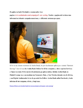 pagina www.arubabank.com/campaigns/i–am–saving. Tambe e pagina aki ta duna mas