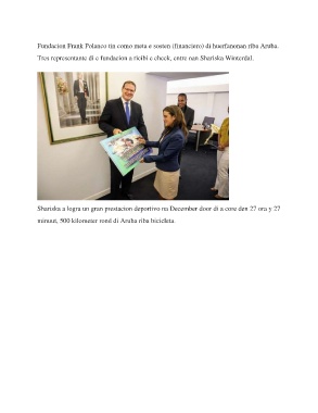 Tres representante di e fundacion a ricibi e check, entre nan Shariska Winterdal.