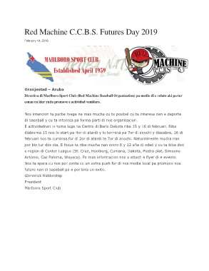 Directiva di Marlboro Sport Club (Red Machine Baseball Organization) pa medio di e relato aki pa tur