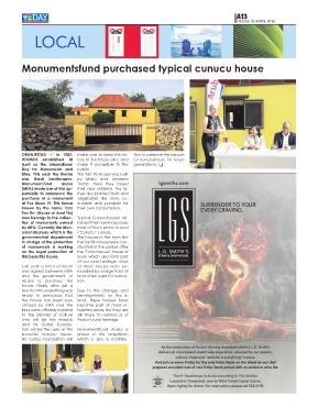 ORANJESTAD — In 1982, make sure to keep the his- tion to preserve this beauti-