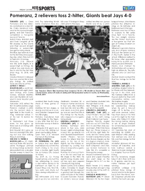 Pomeranz, 2 relievers toss 2-hitter, Giants beat Jays 4-0