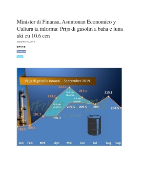 Minister di Finansa, Asuntonan Economico y Cultura ta informa: Prijs di gasolin a baha e luna aki cu 10.6 cen September 12, 2019 SHARE Facebook Twitter