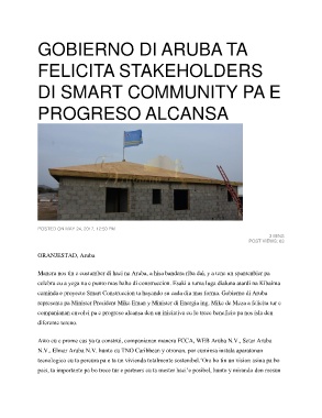 caminda e proyecto Smart Construccion ta hayando su cada dia mas forma. Gobierno di Aruba