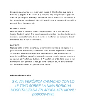 HOSPITALIZADA EN ARUBA.ATH MÓVIL: