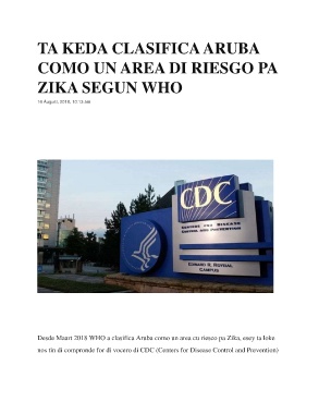 Desde Maart 2018 WHO a clasifica Aruba como un area cu riesco pa Zika, esey ta loke